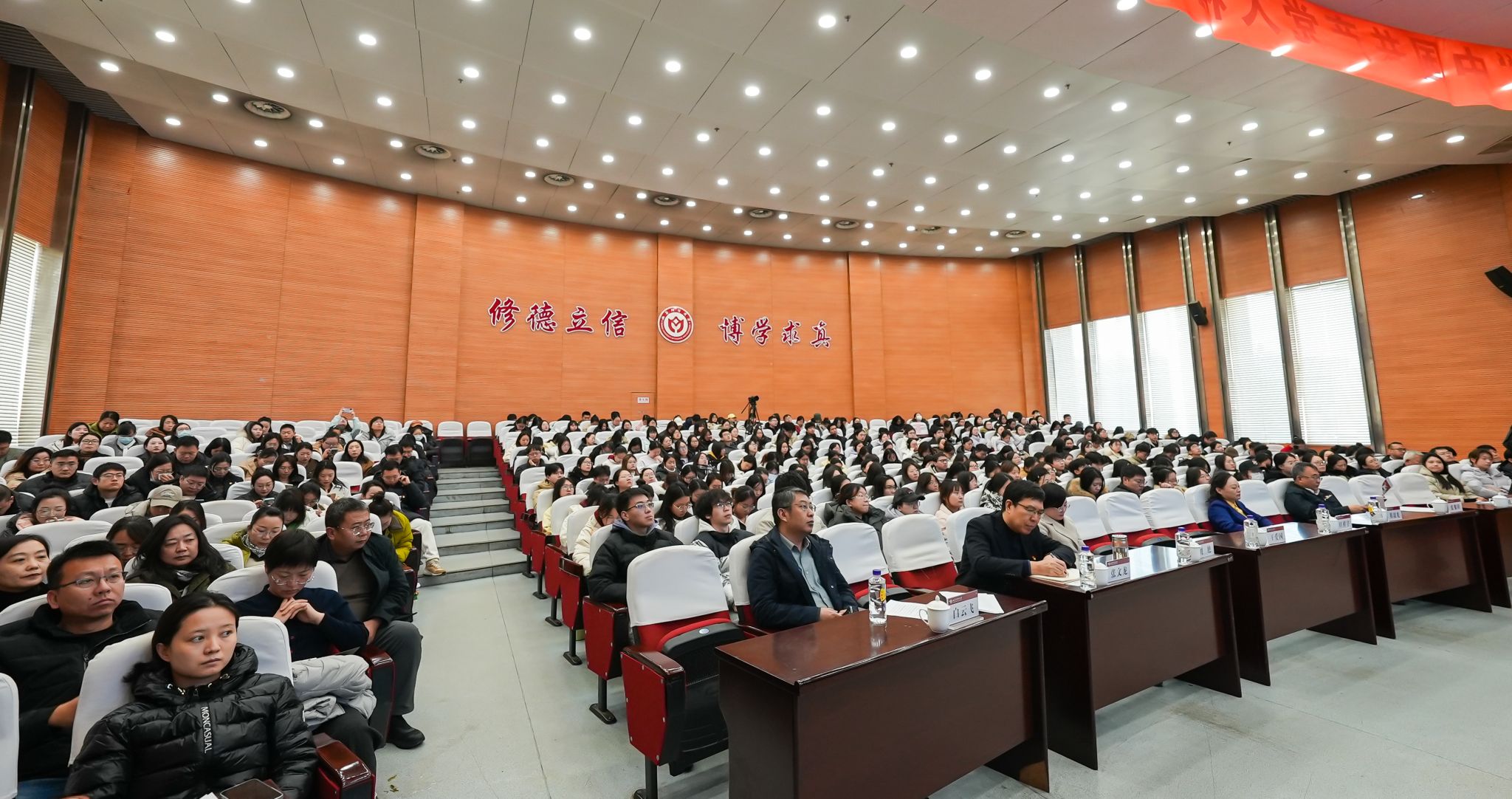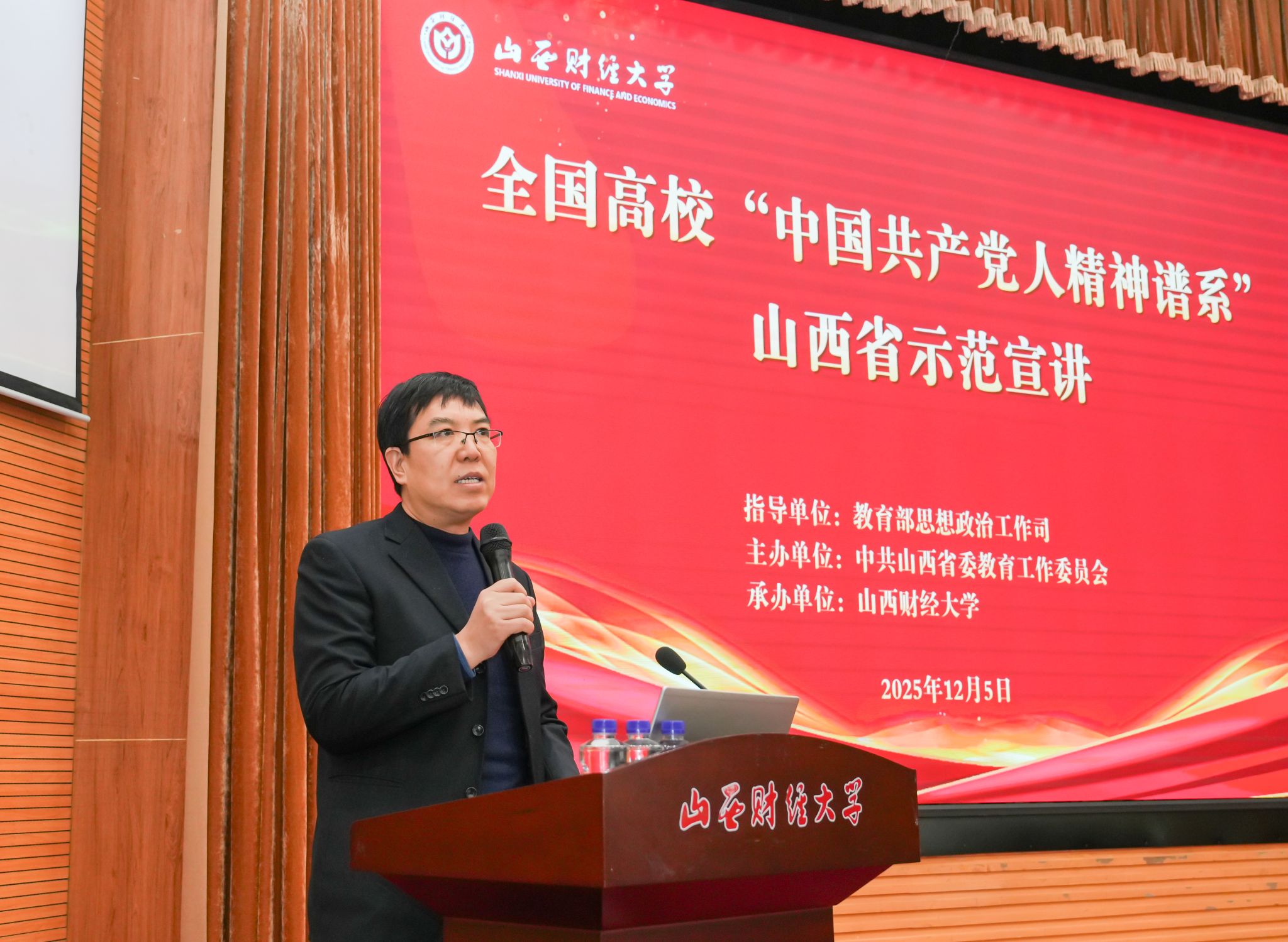 12月5日上午,2025年全国高校“中国共产党人精神谱系”山西省示范宣讲活动在山西财经大学国际学术交流中心报告厅举行。本次活动由教育部思想政治工作司指导、中共山西省委教育工委主办、山西财经大学承办。山西省委教育工委副书记、省教育厅党组成员王爱国,中国大学生在线、全国高校思政网副主任刘艳,山西省教育厅思政处处长白云飞,我校党委副书记、校长田祥宇,副校长张爱龙,与350余名高校思政课教师、基层党务工作者及学生代表齐聚现场,沉浸式聆听宣讲,在红色故事中感悟精神力量,在思想共鸣中传承红色基因。