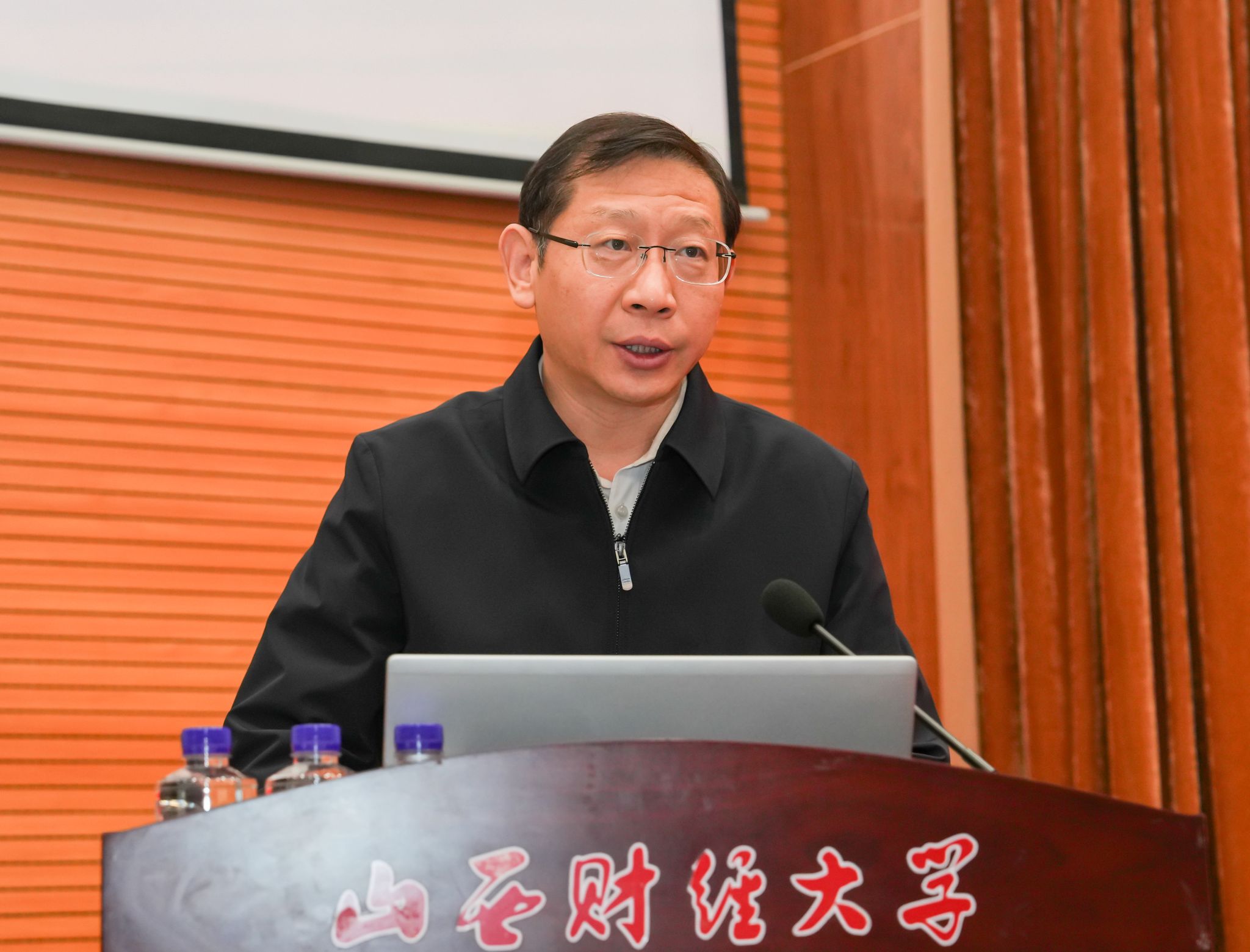 山西财经大学党委常委、副校长张文龙对全校大力传承弘扬中国共产党人精神谱系做出部署要求。他指出,三位宣讲人用充满理论高度和情感温度的讲述,生动诠释了中国共产党人精神谱系的真理力量与时代价值,为全校师生呈现了一堂生动深刻的“大思政课”。他强调,学校将以此次宣讲为重要抓手,推动红色精神与学科教育深度融合,引导青年学生在传承红色血脉中践行时代使命。