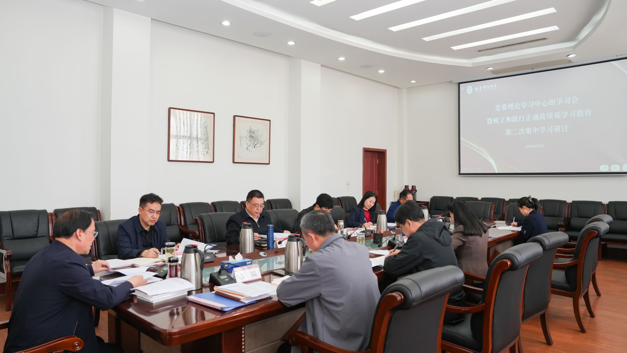 4月9日,校党委理论学习中心组举行2026年第3次集体学习会,同步开展树立和践行正确政绩观学习教育第二次集中学习研讨。会议由党委书记丁耀武主持。