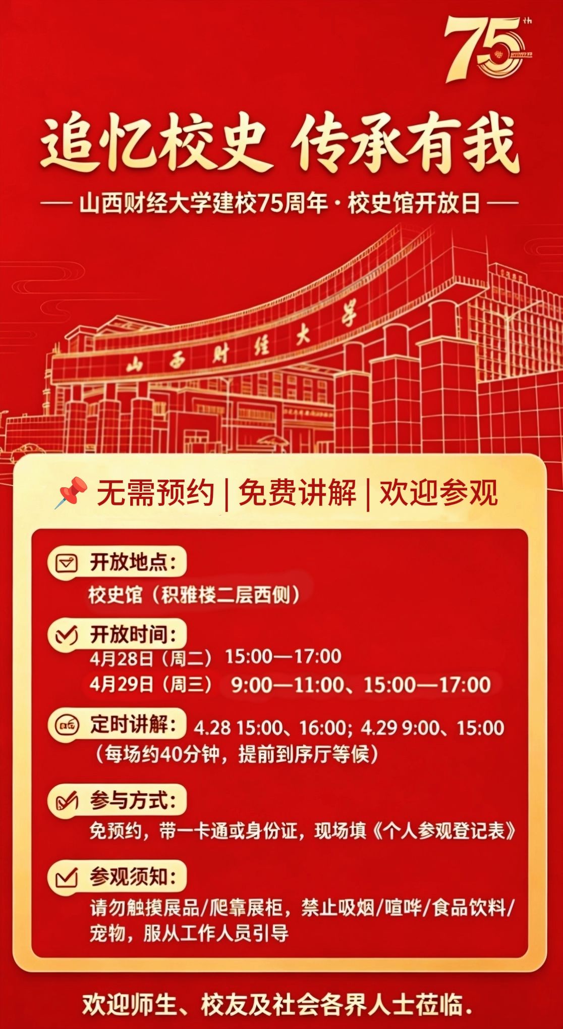 山西财经大学建校75周年校史馆开放日安排