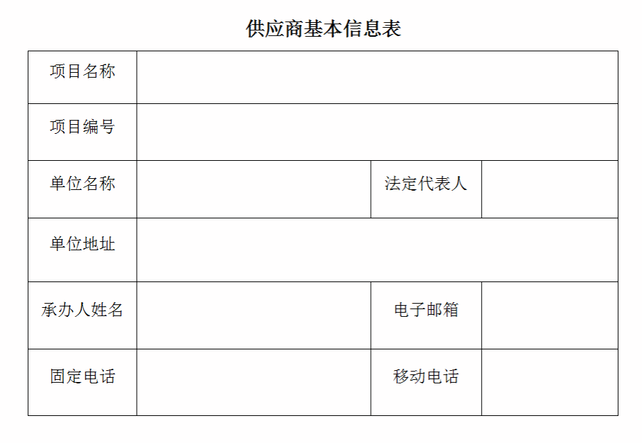 (3)供应商基本信息表(格式如下):