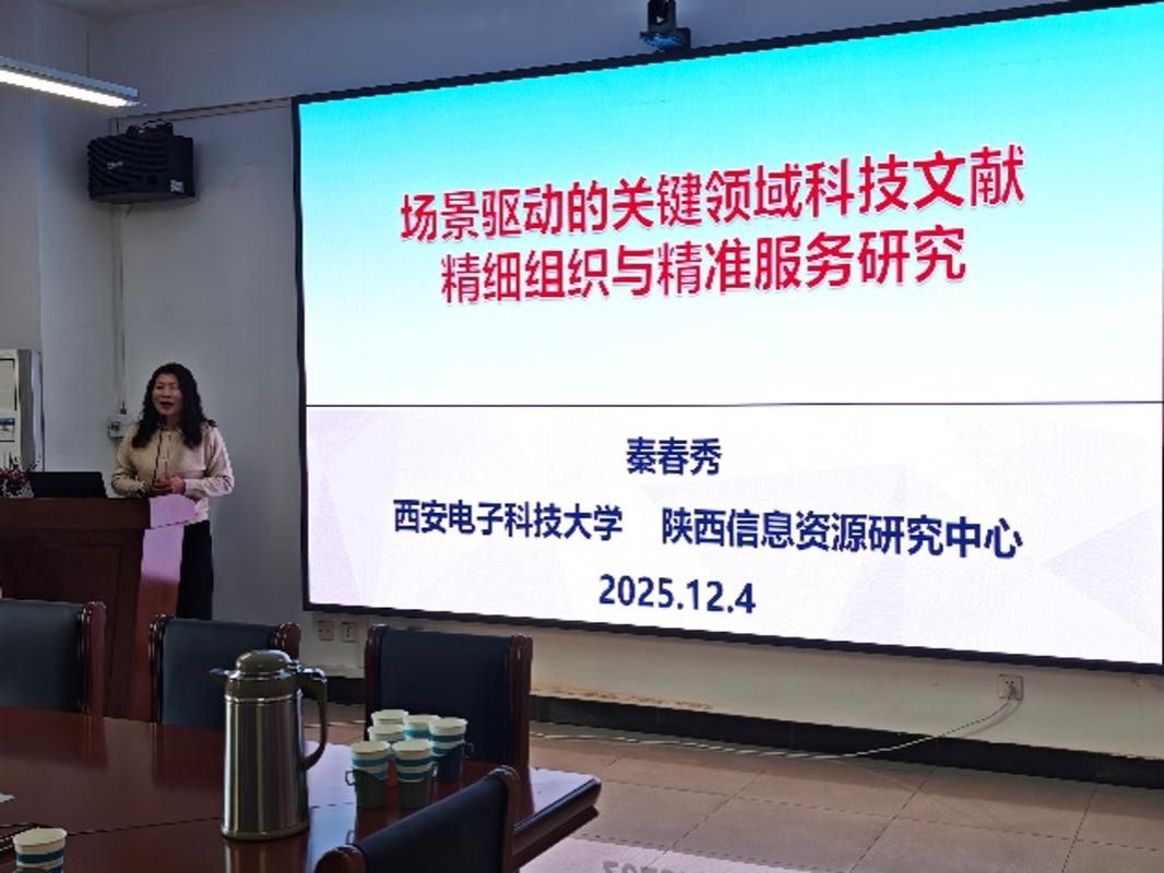 山西财经大学信息资源管理一级学科·一流学者100分钟系列讲坛第24期于2025年12月4日下午在坞城校区立信725举行。本期主讲嘉宾邀请了西安电子科技大学经济与管理学院信息管理系主任、博士生导师秦春秀教授,主题为“场景驱动的关键领域科技文献精细组织与精准服务研究”。信息学院副院长孙晓宁教授主持。