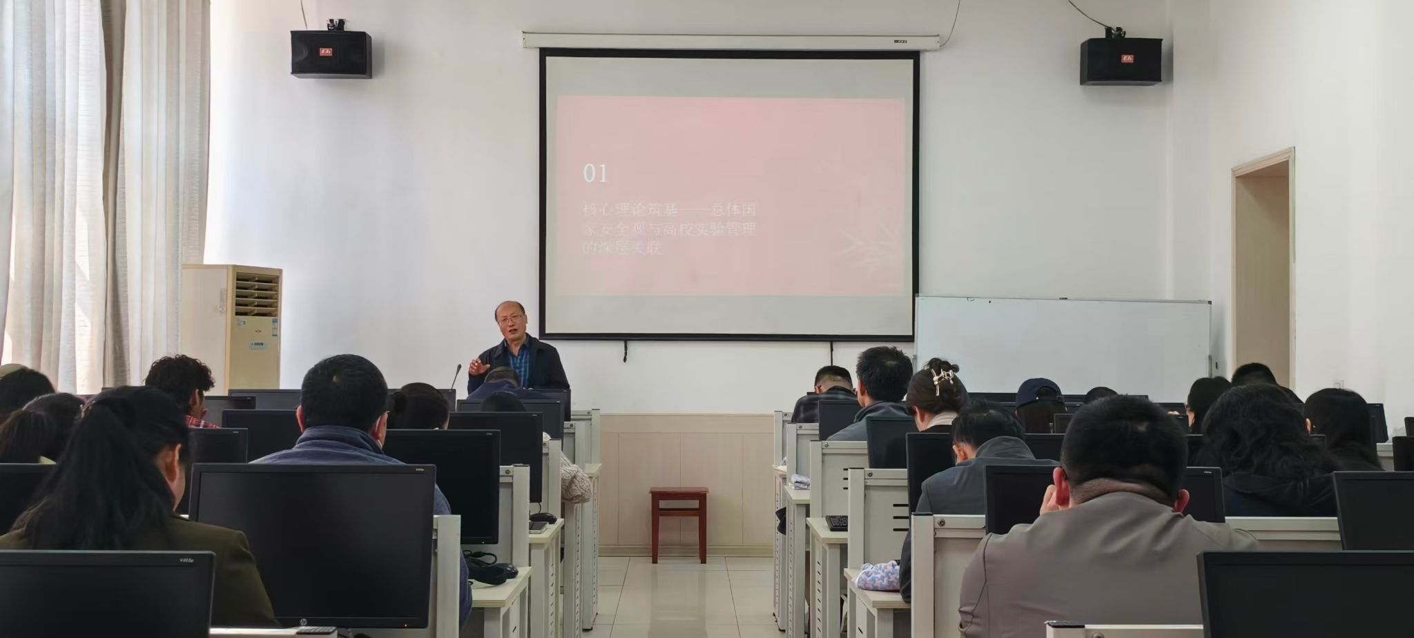 在修德楼1层103教室的室内专题讲座阶段,实验实训中心主任赵文生教授以《国家安全与基础安全管理——2026年4.15全民国家安全教育日专题讲座之高校非理化试验室安全管理》为题,为参会人员进行精彩授课。赵文生从总体国家安全观核心要义出发,结合我校实验室管理实际,深入解读了非理化实验室与国家安全的深层关联,明确了实验室水电安全、设施设备安全、网络数据安全等核心防控领域的风险点和管理要求,强调实验管理部门要切实履行“守牢校园安全底线,筑牢国家安全基层防线”的双重职责,将国家安全意识融入实验室日常管理的每一个细节。