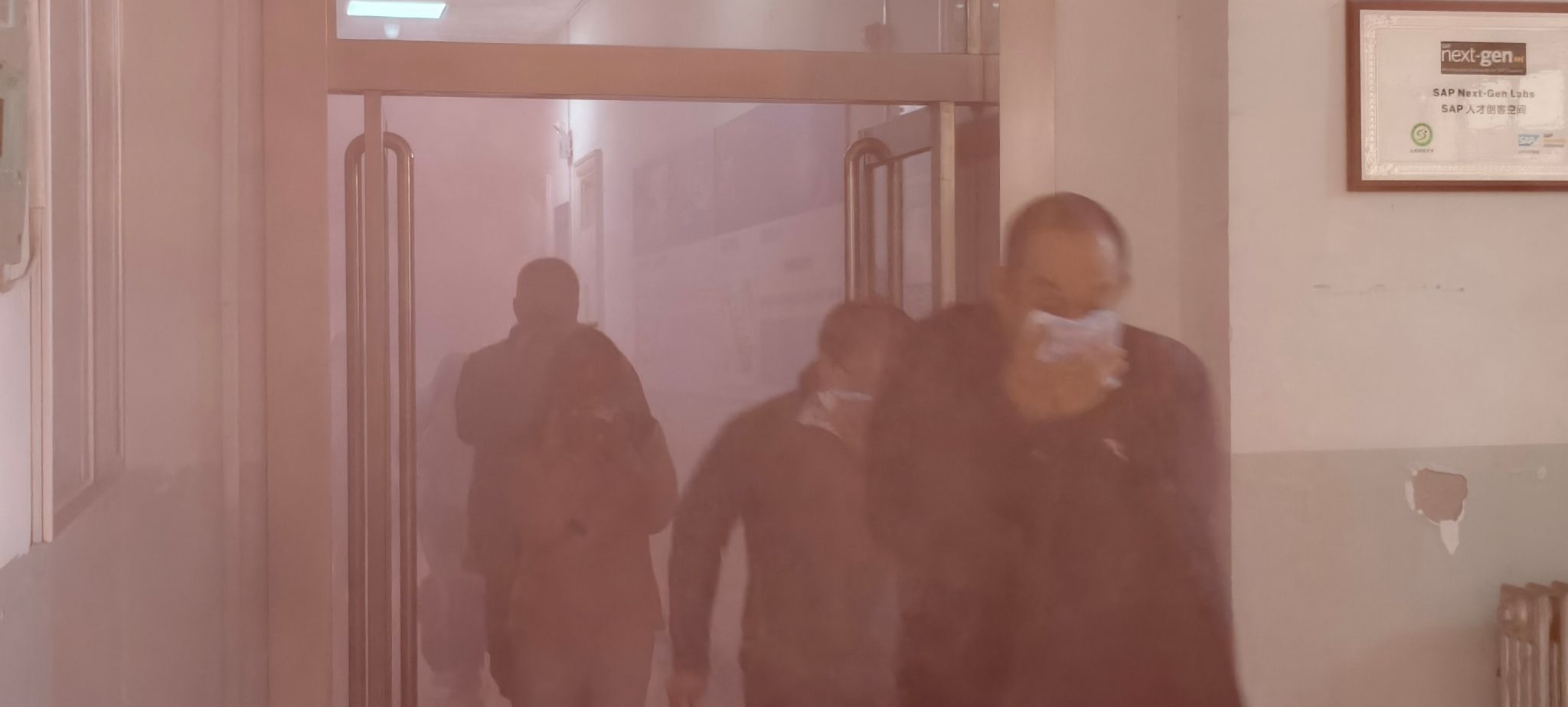 室内理论学习结束后,全体参会人员开展实验室模拟逃生演练。在专业人员的现场指挥下,大家严格按照规范流程,快速、有序从模拟场景撤离至指定安全区域,熟悉了突发情况下的逃生步骤和疏散要点,提升了应急疏散的实操能力。