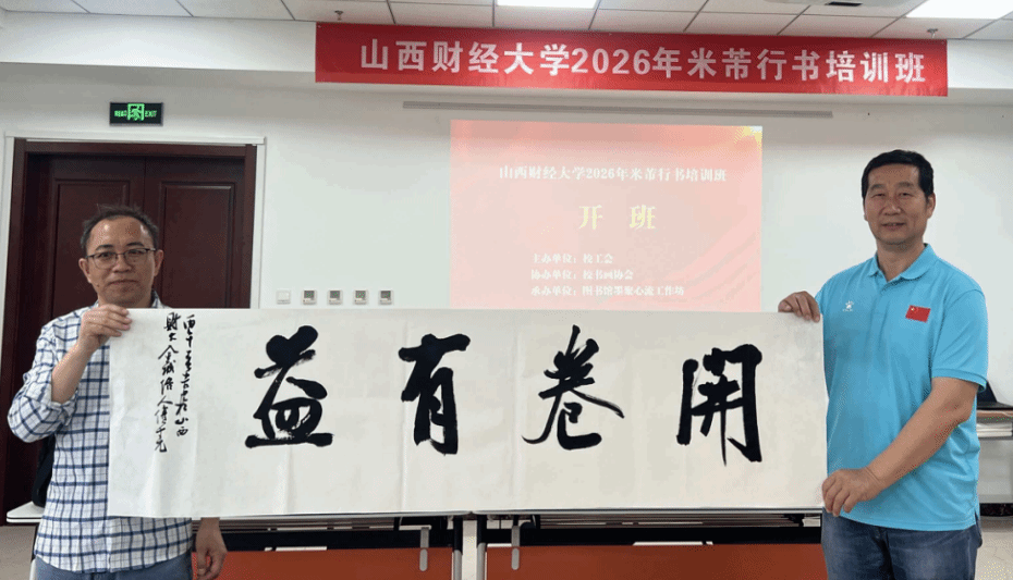为确保培训质量,本次培训班特别邀请中国书法家协会会员、山西省书法家协会会员、山西省青年书法家协会理事郭传虎老师担任主讲教师。开班仪式结束后,郭传虎老师现场挥毫,写下“开卷有益”四字作品,既为培训班拉开序幕,也借此庆祝首个全民阅读活动周的到来,将书法艺术与图书馆的阅读推广职能巧妙结合。本次书法班以米芾行书《蜀素帖》为核心学习内容,精准对接教职工的美育需求,重点讲解行书笔画的牵丝连带、章法布局等技巧。图书馆墨聚心流工作坊负责人王红研究馆员表示,书法美育是校园文化建设的重要组成部分,也承载着图书馆技能传授、文化传承与心灵滋养的使命担当,通过笔墨传承中华文脉,以美育涵养师者初心,让每一位学员在墨香中提升素养、凝聚力量。