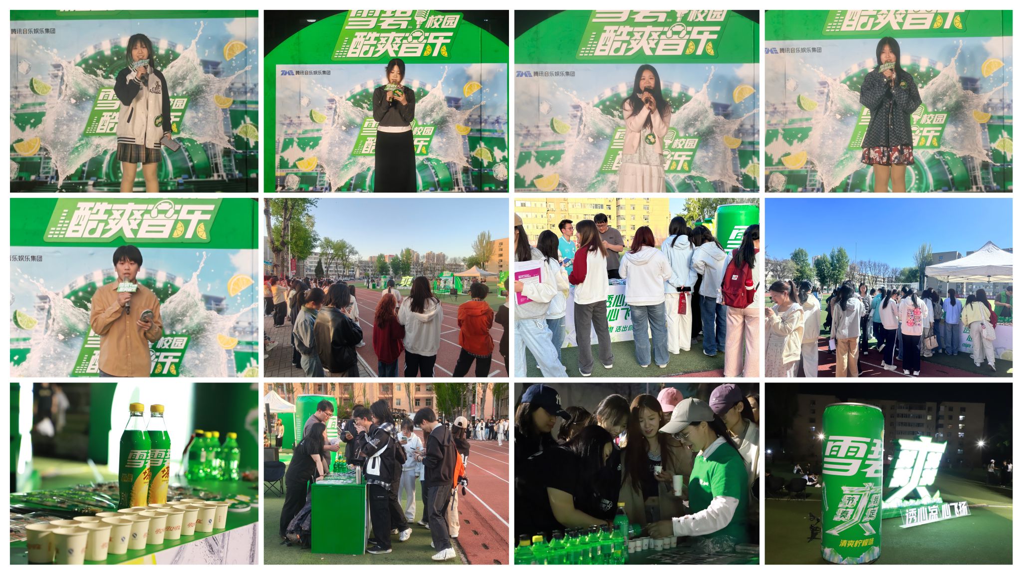 台下师生围坐在田径场草坪上,认真聆听每一首歌曲,积极与台上选手互动呼应。当熟悉的旋律响起,大家纷纷自发挥手应和、轻声跟唱,掌声、叫好声与悠扬歌声交织在一起,弥漫在整个赛场,轻松热烈的氛围感染着现场每一个人。清爽雪碧相伴左右,更为这场音乐盛会增添了别样惬意,让音乐与青春的碰撞更具活力与质感。