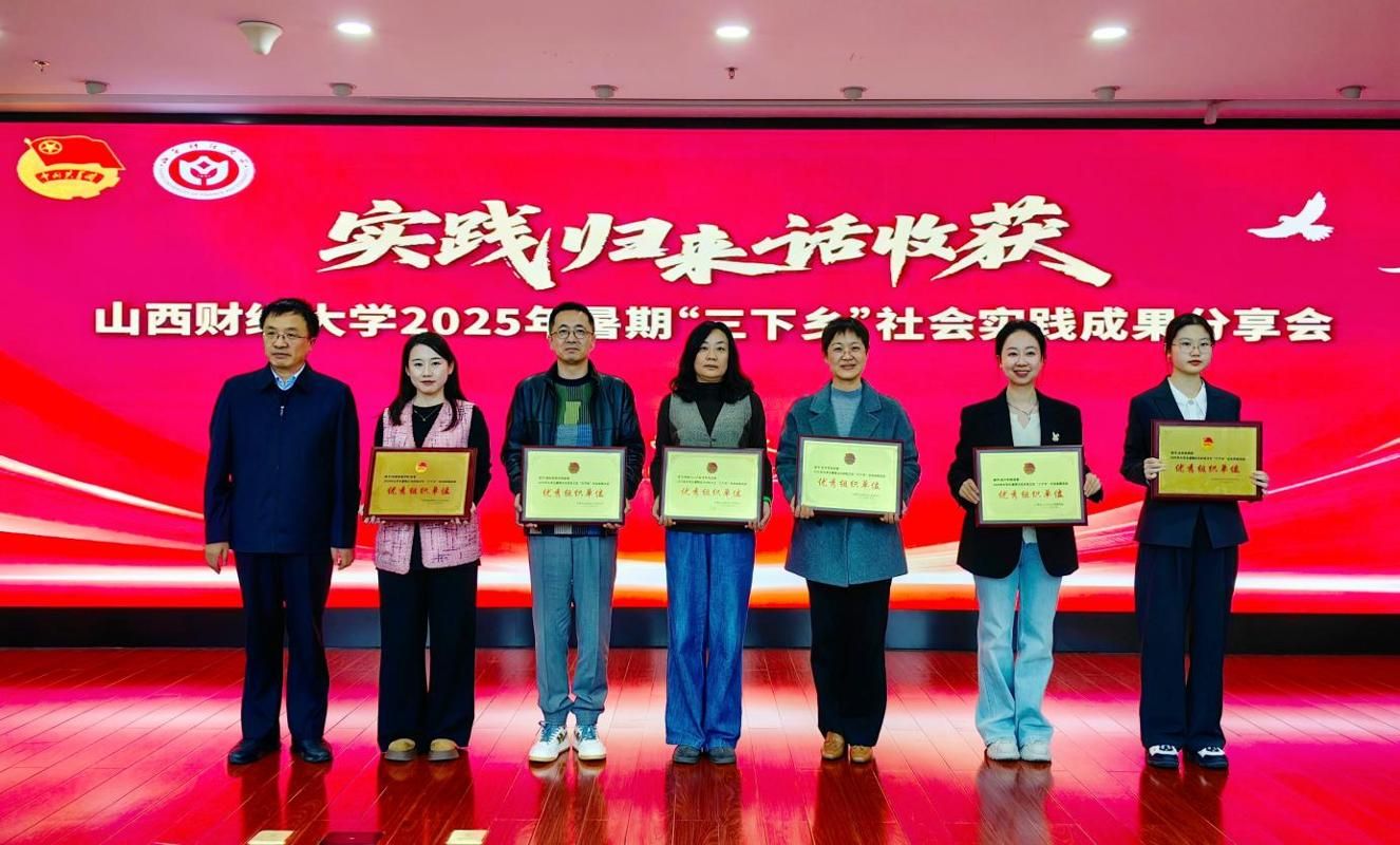 会议现场播放了我校2025年暑期“三下乡”社会实践总结视频,视频全方位展现了社会实践活动的丰硕成果。会议表彰了山西财经大学2025年大学生暑期“三下乡”社会实践活动优秀组织单位、优秀团队、优秀个人和优秀指导教师。