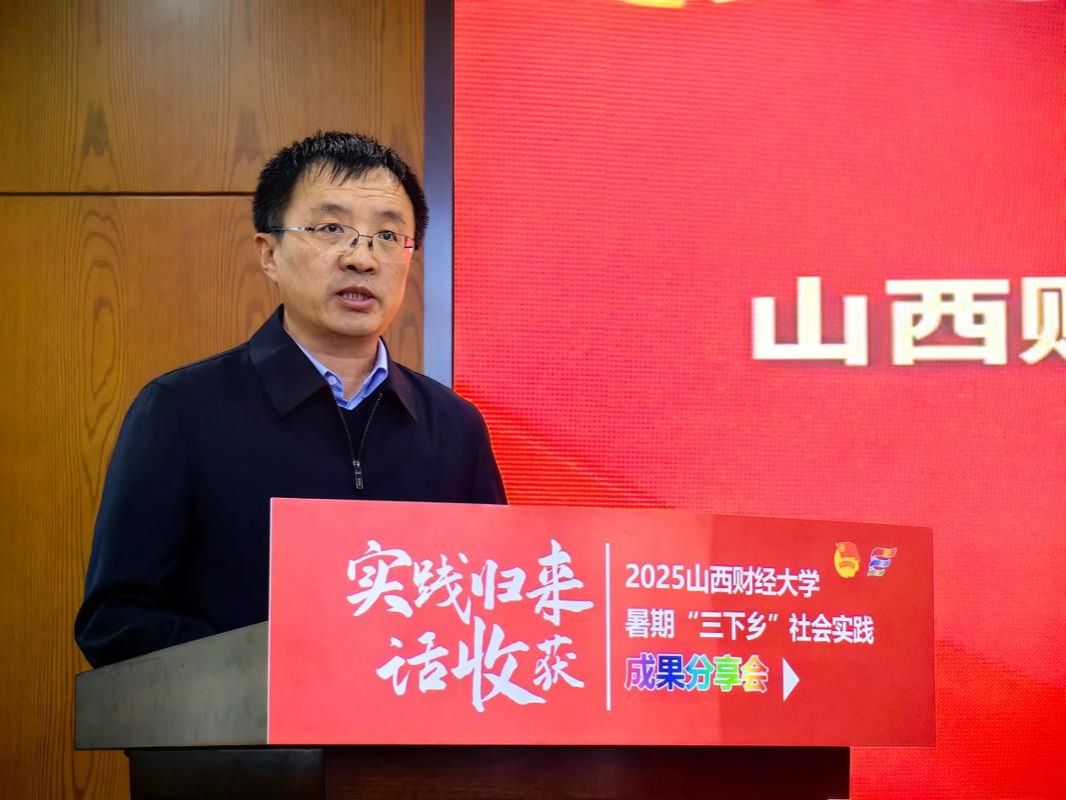 实践归来话收获,10月29日下午,山西财经大学2025年暑期“三下乡”社会实践成果分享会在坞城校区图书馆东馆一层报告厅举行,党委副书记寇福明出席会议,宣传部、学工部、校团委负责人,部分学院党委副书记、团委书记,暑期“三下乡”社会实践团队师生代表参加会议。
