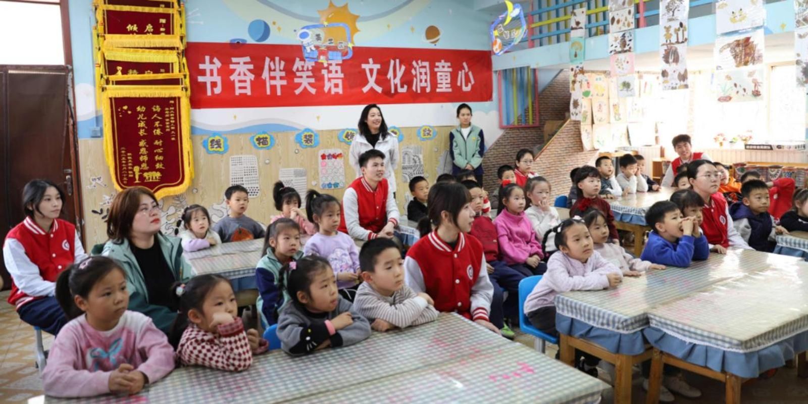 为深入贯彻落实两会精神,扎实推进思政教育一体化建设,健全学校家庭社会协同育人机制,3月10日下午,学生工作部晋华文化育人工作室、蔚然思想引领工作室组织“红色新青年领航工程”成员走进新秀幼儿园,开展红色文化宣讲活动。活动以讲述抗日小英雄王二小的感人事迹为主线,结合剪纸趣味互动,将红色思政教育融入幼儿启蒙阶段,让红色基因在童心深处生根发芽。