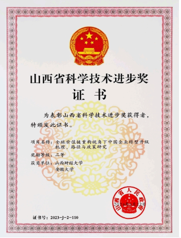 管理科学与工程学院王建秀教授主持的“全球价值链重构视角下中国企业转型升级机理、路径与政策研究”项目获得山西省科技进步二等奖。该项目以全球价值链重构作为时代背景,在中国企业面临GVC低端锁定、劳动力成本优势逐日消失、以及不断受到来自发达经济体的反倾销调查的现实困境下,以提升中国企业国际竞争力为目的,研究中国企业转型升级的理论基础与实施方案。