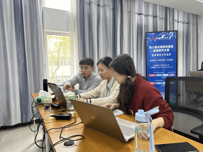 赛事竞技展风采,多轮比拼验功底。3月28日上午,参赛选手齐聚图书馆东楼三层电子阅览室,开启线上答题环节。各参赛队三名选手登录“知图平台”独立作答,答题时长120分钟,答卷由系统自动完成阅卷。本次线上试题涵盖单选、多选、判断三类题型,重点考查选手的信息素养基础知识、信息检索分析能力,以及图书馆数字资源的获取与运用能力。当日下午,赛事转入团队协作环节。参赛队伍需在4小时内完成分析报告撰写与PPT制作,并现场提交成果。本环节题目紧扣经济时事热点,综合检验选手的信息素养、财经素养与学术素养,提交的报告由专家评委进行专业评审打分。
