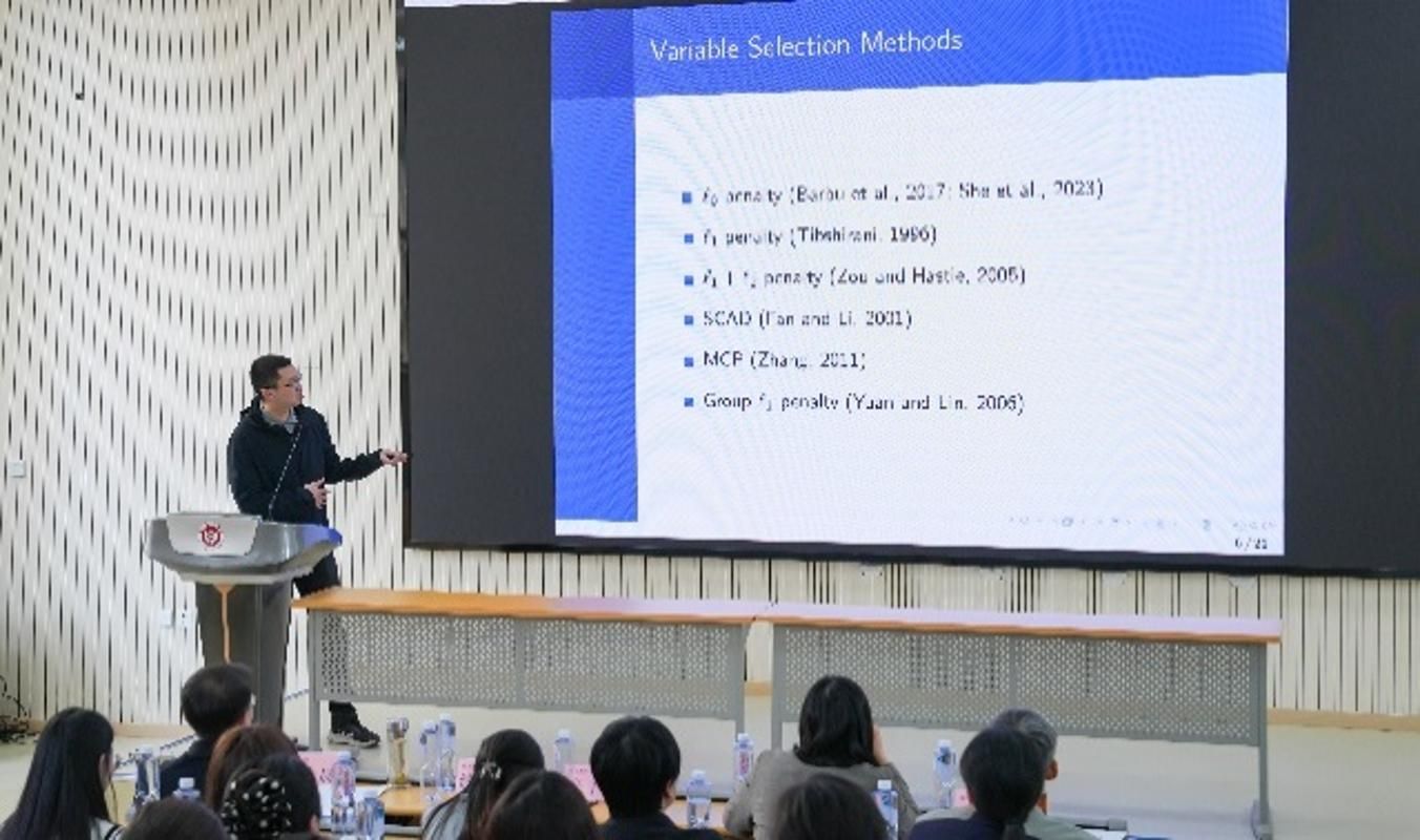 第二单元是应用数理统计研究方向的两位青年教师。孙力喆老师作了题为《Feature Selection with Annealing for Shallow Neural Networks Using the Multi-Stage Stochastic Algorithm》的报告,深入探讨了神经网络在高维统计模型中的应用。在模型构建上,利用浅层神经网络逼近非参数函数,并通过Group L1 penalty进行变量选择;在训练环节,提出基于随机梯度下降的截断算法及迭代优化策略,以逐步剔除冗余变量;在验证阶段,通过高维BIC确保了模型的稳健性。报告最后还展望了该方法向多层神经网络扩展的可行性及后续研究方向。
