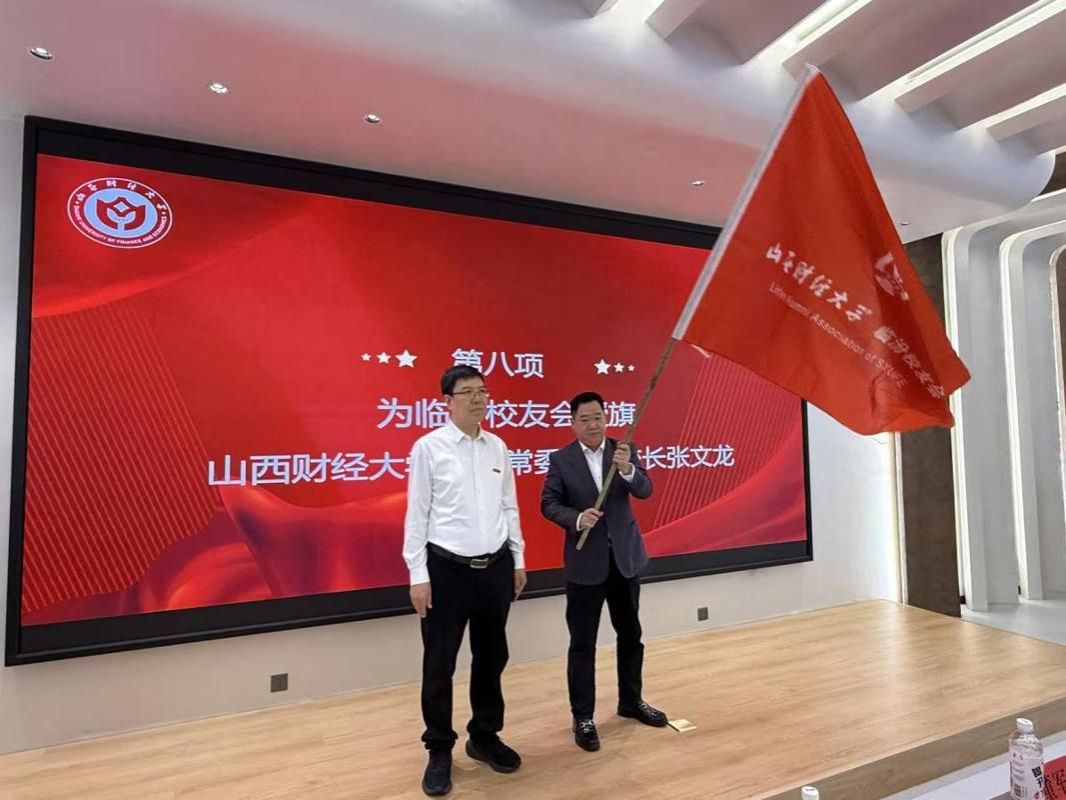 党委常委、副校长张文龙为临汾校友会授旗
