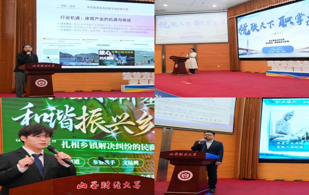 大赛采用院赛、校复赛、校决赛三级赛制,历经层层选拔。11月22日,132名从各学院脱颖而出的选手在校复赛中展开角逐,通过主题陈述与评委问答,展现了清晰的职业规划与综合素养。11月29日,晋级决赛的29名选手在国际交流中心进行最终比拼,围绕职业目标、发展路径展开深入阐述,并在“天降实习offer”环节中与企业代表互动,多名同学现场获得实习邀约,充分体现了山财学子的专业能力与职场潜力。