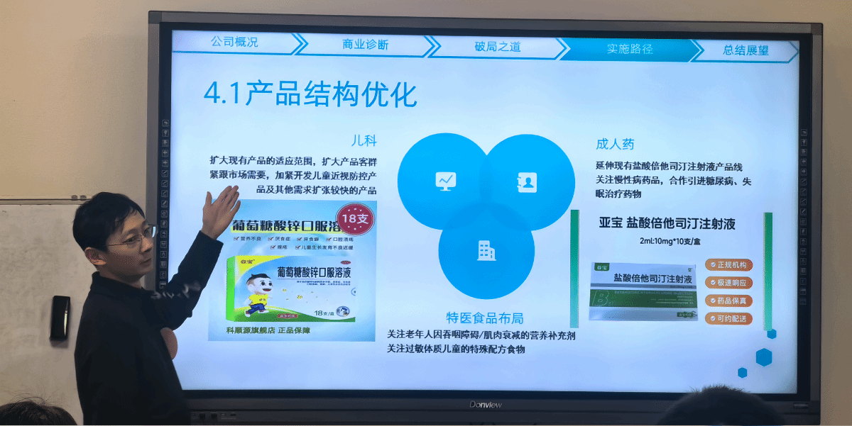 比赛现场,各参赛小组依次进行10分钟的精炼陈述。同学们灵活运用管理学理论与分析工具,将复杂案例拆解为清晰的逻辑链条,从问题诊断到方案推导层层递进,以兼具专业深度与表达感染力的展示,赢得评委与现场观众的一致认可。