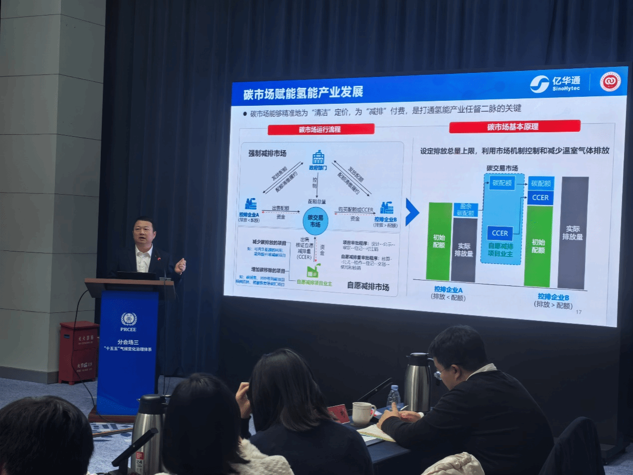 我校双碳产业研究院院长张国强应邀出席,并在题为“‘十五五’气候变化治理体系”的专题研讨环节中发表演讲。张国强院长系统阐述了碳市场在引导氢能产业绿色低碳转型中的关键作用与实施路径,指出绿氢成本高昂,下游市场对清洁氢的辨识与支付意愿薄弱,若无外部机制将碳排放成本显性化,氢能难以跨越从示范到规模的市场鸿沟,强调碳市场能够精准地为“清洁”定价,为“减排”付费,是打通氢能产业任督二脉的关键。