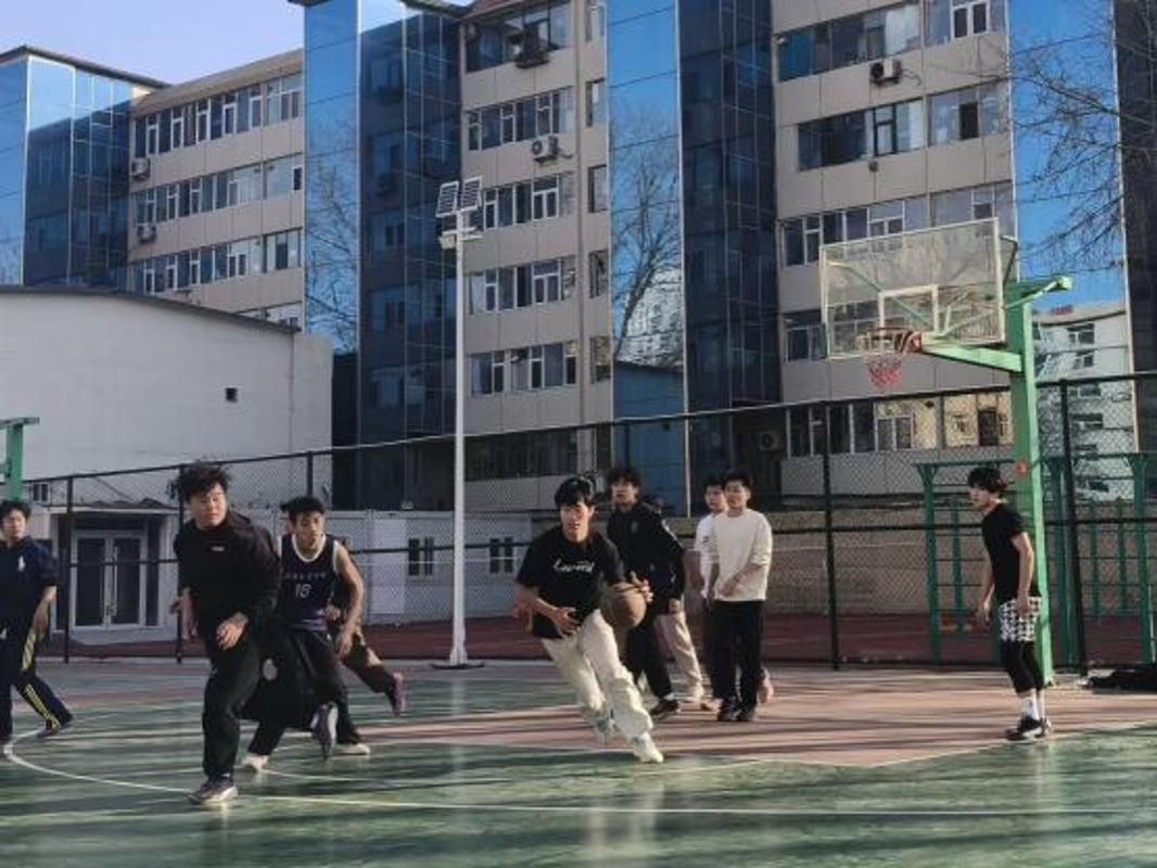 赛场上,队员们精神饱满、斗志昂扬,充分展现了应数学子的青春活力与竞技风采。随着裁判一声哨响,双方队员迅速进入状态,运球突破、精准传球、起跳投篮、严密防守等动作轮番上演。进攻时,队员们配合默契、奋勇争先,用流畅的战术撕开对方防线,防守时,大家齐心协力、紧密协作,用坚定的意志守护己方阵地。篮球撞击地板的清脆声响、队员们的呐喊助威声与场边观众的阵阵欢呼交织在一起,现场气氛热烈非凡。