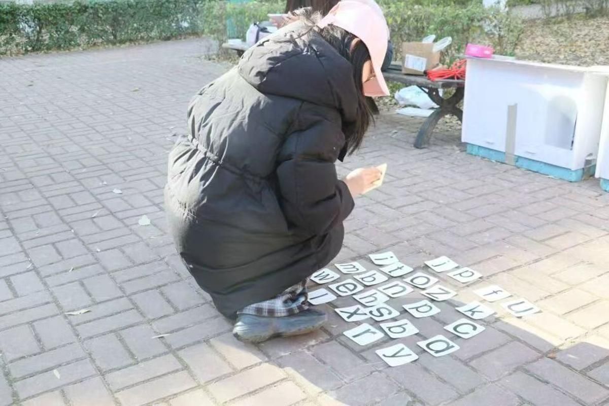 英语单词接力跑同样精彩不断。两人一组默契配合,一人从单词清单中选定词汇传递给队友,另一人奔跑至终点寻找对应单词卡片并完成拼写。成功则互换角色继续接力,失误则及时调整重试,三分钟的限时比拼中,奔跑的活力与拼写的专注相映成趣。通过动态互动强化了词汇记忆,让英语学习从“静态背诵”变为“动态实践”,真正“活”了起来。