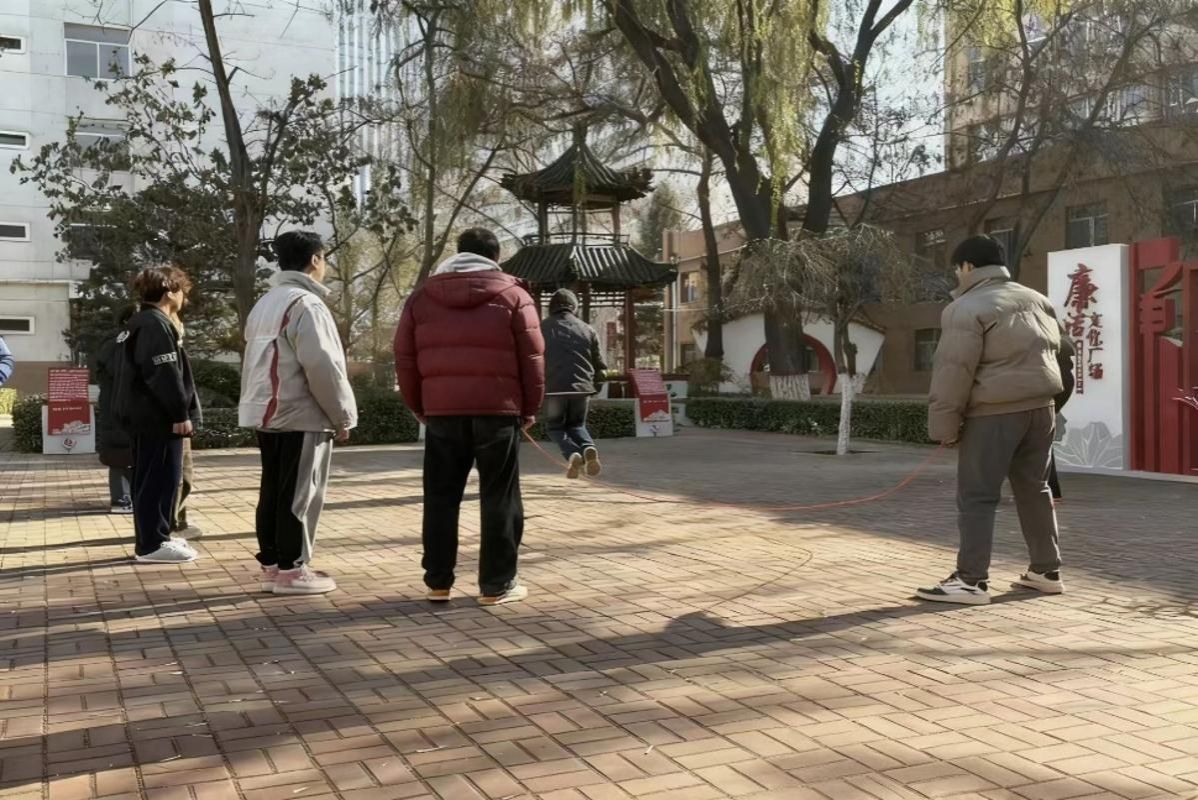 活动中,由经贸外语学院深度参与设计的环节亮点频出,成为语言学习与体育竞技深度融合的生动注脚。英语单词跳大绳环节亮点十足。两人摇绳把控节奏,参赛队员分组依次入场,需在跳绳的同时快速完成裁判下达的“中文译英文”即时任务——裁判说出“蓝色”“火车”等基础词汇,队员需在跳跃时同步应答,节奏与脑力的双重挑战让现场氛围持续升温。全程满是欢快的互动,跳跃的身影、清脆的英语单词声与此起彼伏的笑声交织,成为广场上最具活力的风景线。