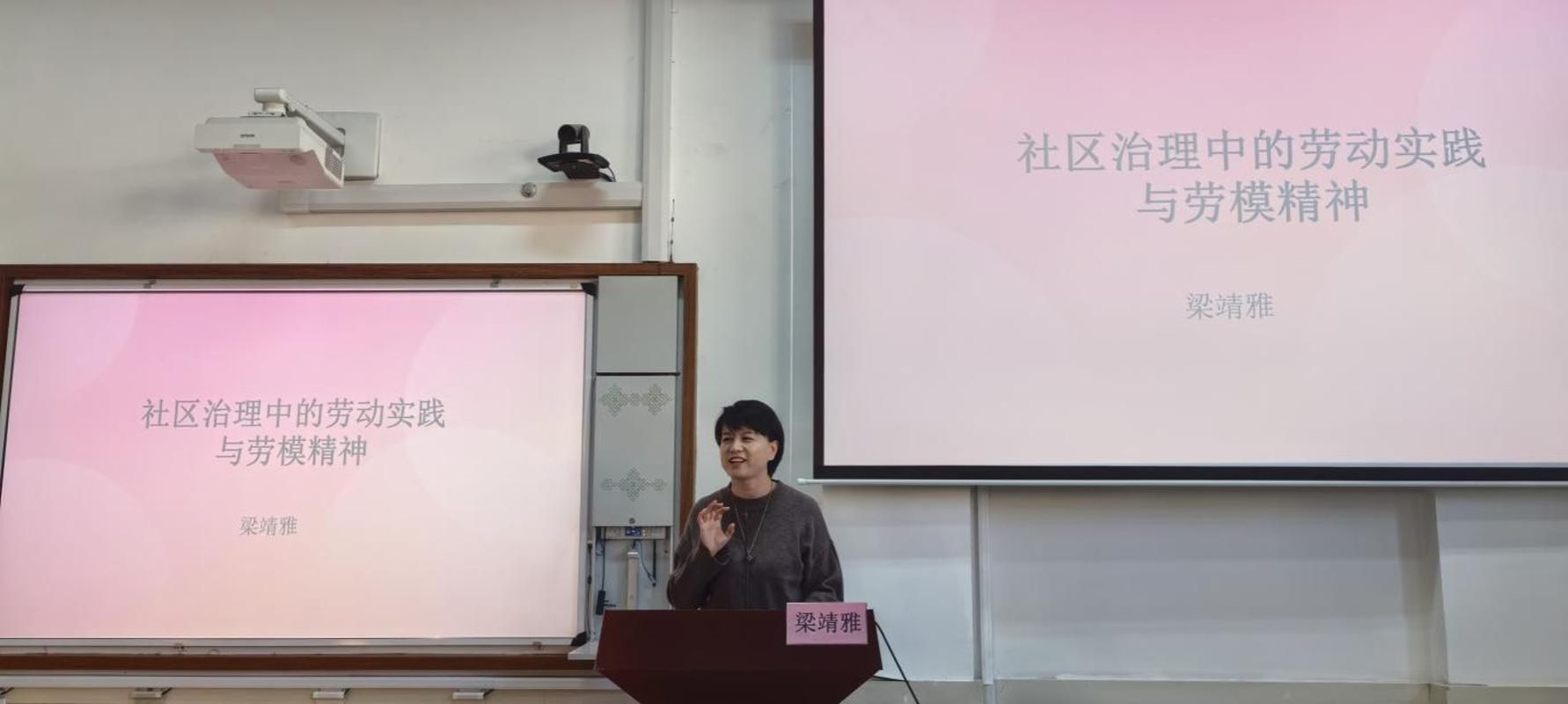 为深入推进劳动教育入心入脑,激发学生对劳动价值的深入思考,突出活动的精神内涵,筹备组邀请梁靖雅做了 “社区治理中的劳动实践与劳模精神”专题报告。她结合新城社区治理实例,阐述劳动实践在社区环境改善、居民矛盾调解中的关键作用,深入解读了劳模精神“实干为要、服务为民”的核心内涵,为劳动教育工作者提供了基层视角的实践参考。