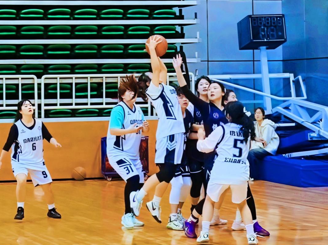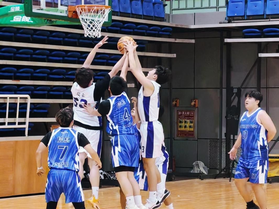 决赛现场高潮迭起,巅峰对决精彩纷呈。球员们身形矫健,攻防转换迅如闪电。精准的远投、漂亮的突破、默契的传切配合、奋力的篮板拼抢,每一个精彩的瞬间都引得现场观众爆发出雷鸣般的掌声与呐喊。男子篮球决赛中,信息学院和金融学院强强对话,双方队员全力以赴,赛场气氛在一次次精彩进球与观众欢呼声中被推向高潮,信息学院最终凭借精准投篮摘得桂冠。女子篮球决赛中公共管理学院与经济学院对战,赛场上她们拼尽全力,展现出独特的力量和美感,公共管理学院最终问鼎女子组冠军。