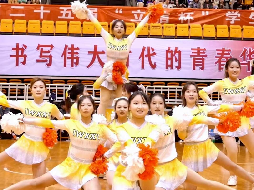 啦啦操赛场同样精彩纷呈。各学院的参赛队伍风格各异,展现出蓬勃的青春活力。花球组整齐划一,队形精准得当,充满自信的张力;街舞组动作利落,踏着动感节拍,将节奏完美把握。最终,文化旅游与新闻艺术学院、体育学院分别斩获花球组和街舞组一等奖。