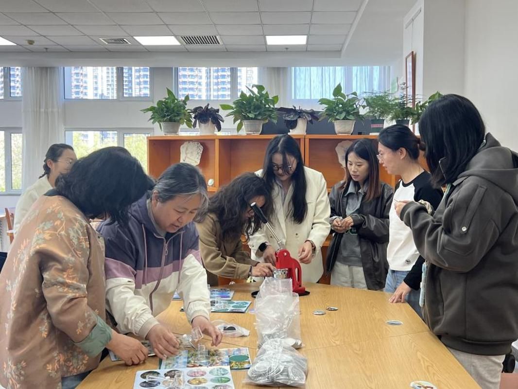 手作解压传递乐趣,文创赋能,治愈升温。活动尾声,师生共同参与“造境:徽章制造所”手作体验。师生借助文创设备,制作专属书房的个性化徽章与冰箱贴,以沉浸式创作解锁手作乐趣。这一环节巧妙契合心理学“小确幸”理念,将微小而真切的愉悦感注入师生心间,让科技赋能文创的便捷性与手工创作的情感温度相融共生,不仅为整场文化疗愈活动画上圆满句点,更以具象化的文创成果,为师生的心灵治愈之旅留存下一份可触摸、可珍藏的温暖记忆。