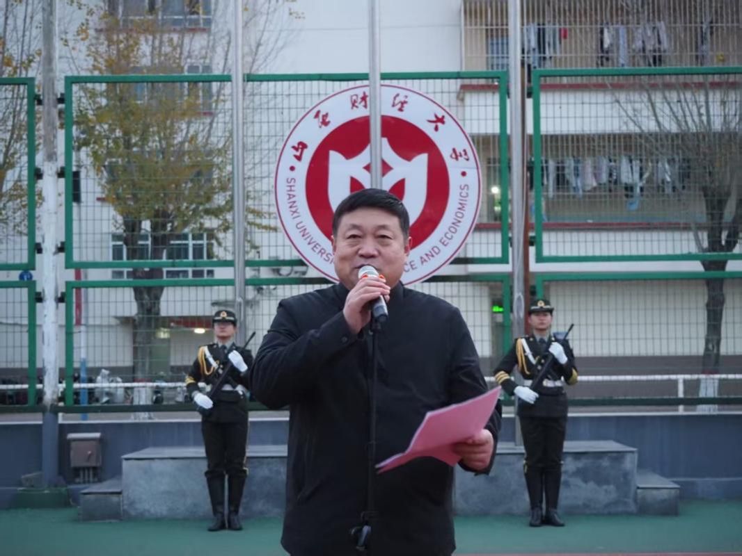 为纪念中国人民抗日战争暨世界反法西斯战争胜利80周年,缅怀革命先烈,弘扬伟大抗战精神,激发师生爱国热情与时代担当,11月17日清晨,会计学院在坞城校区体育场举行升国旗仪式,学院领导班子、全体辅导员及在校学生参加。
