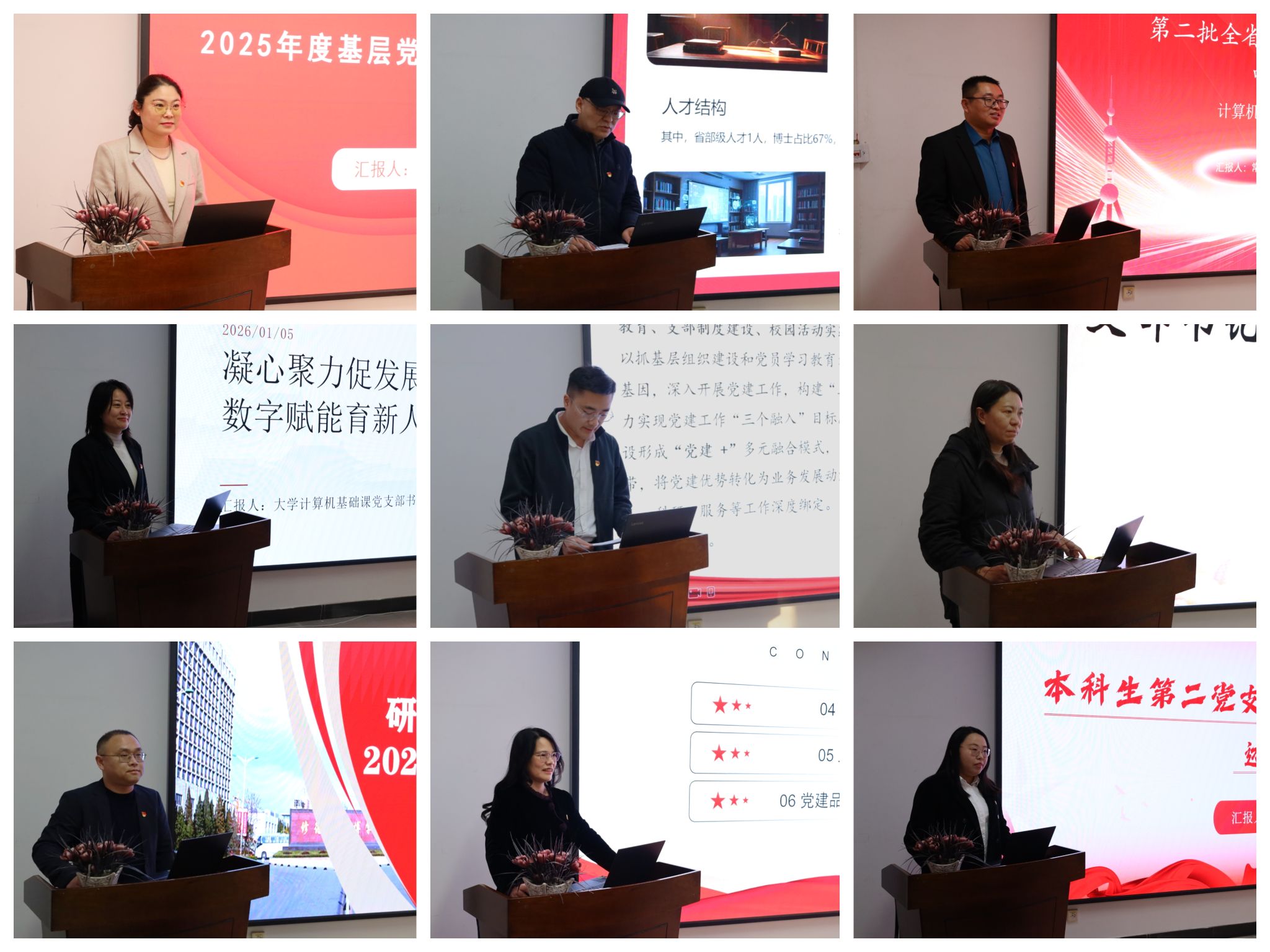 听取述职汇报后,高萍进行了集中点评,充分肯定了各支部在过去一年取得的扎实成效,客观分析了当前存在的问题与未来挑战,结合学院中心工作,对2026年党建工作做出部署。一是持续深化理论武装,把稳思想之舵,确保把校党委的新部署、新要求转化为谋划学院发展的新思路。二是持续夯实党建根基,筑牢战斗堡垒,着力打造具有信息学院特色党建品牌。三是持续推进党建融合,赋能高质量发展,将党的组织优势切实转化为学院事业创新发展的制胜优势,以优异成绩迎接“十五五”规划开局。
