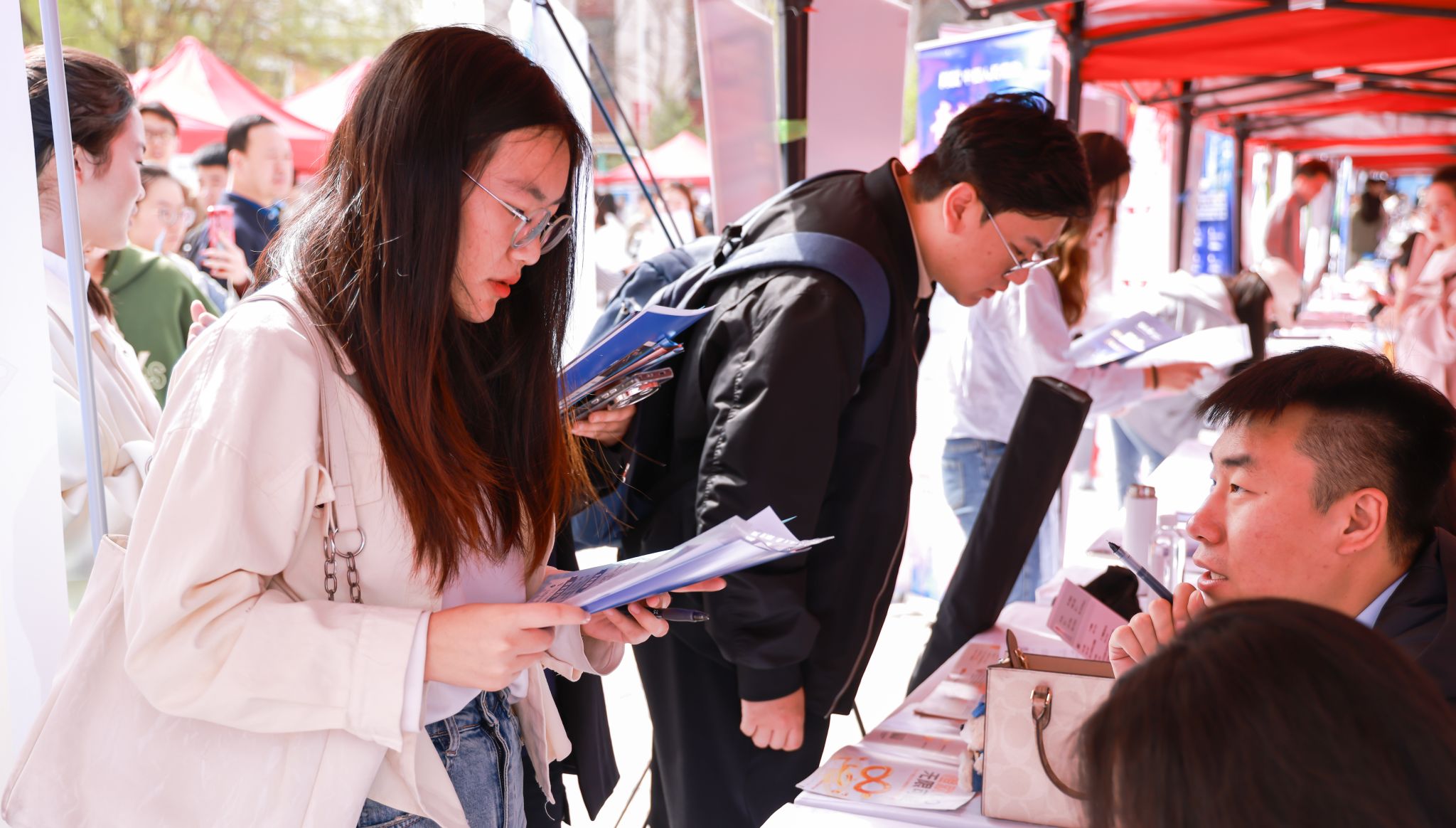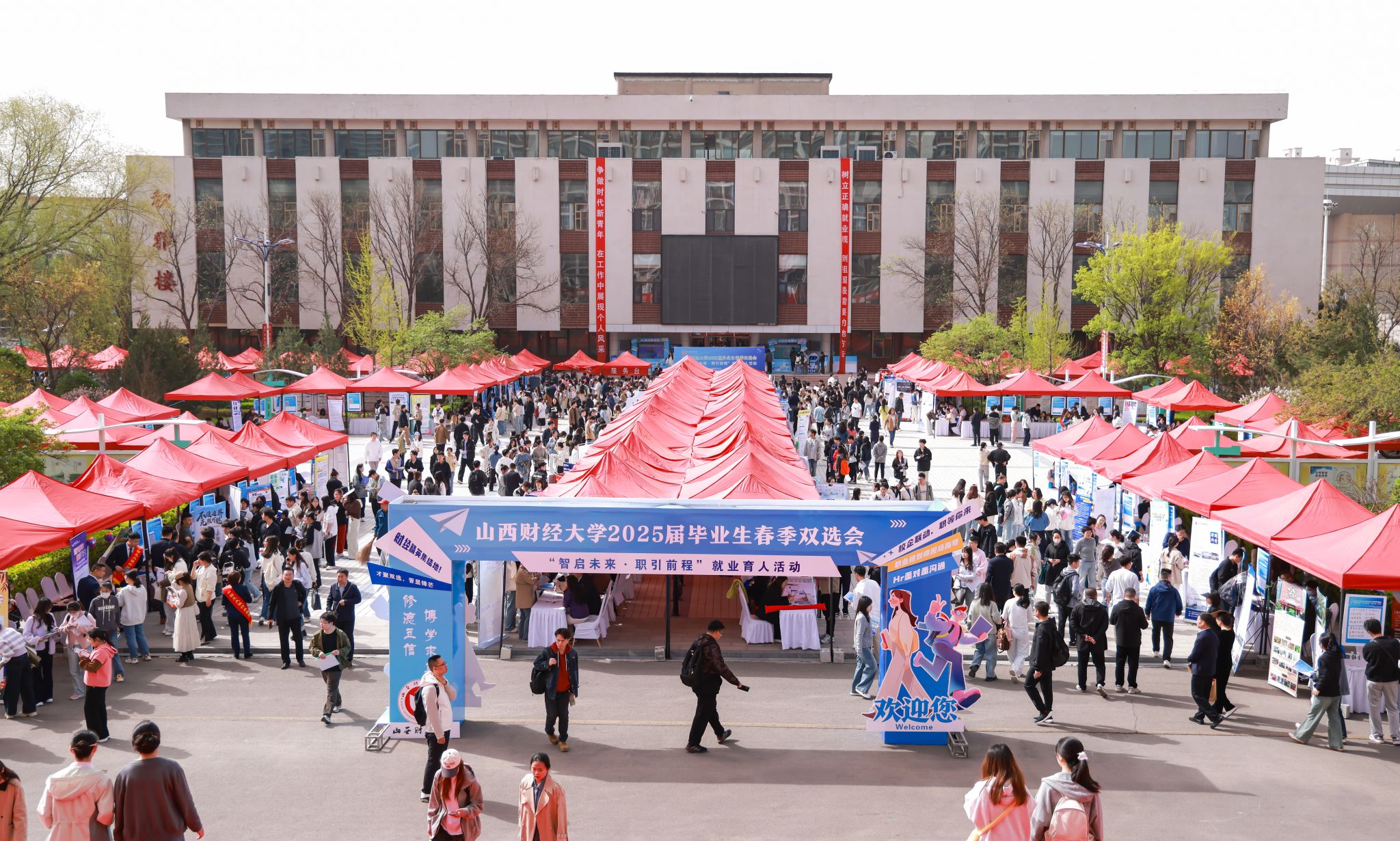 为深入贯彻党中央、国务院就业工作决策部署,扎实推进我校2025届毕业生就业工作,4月11日,我校在坞城校区修德楼南侧广场举办了2025届毕业生春季双选会暨“智启未来·职引前程”就业育人活动。本次双选会由我校联合共青团山西省委、山西省民营经济发展局主办,就业创业中心(创新创业学院)、国内交流合作部(校友工作办公室)、共青团山西财经大学委员会共同承办。